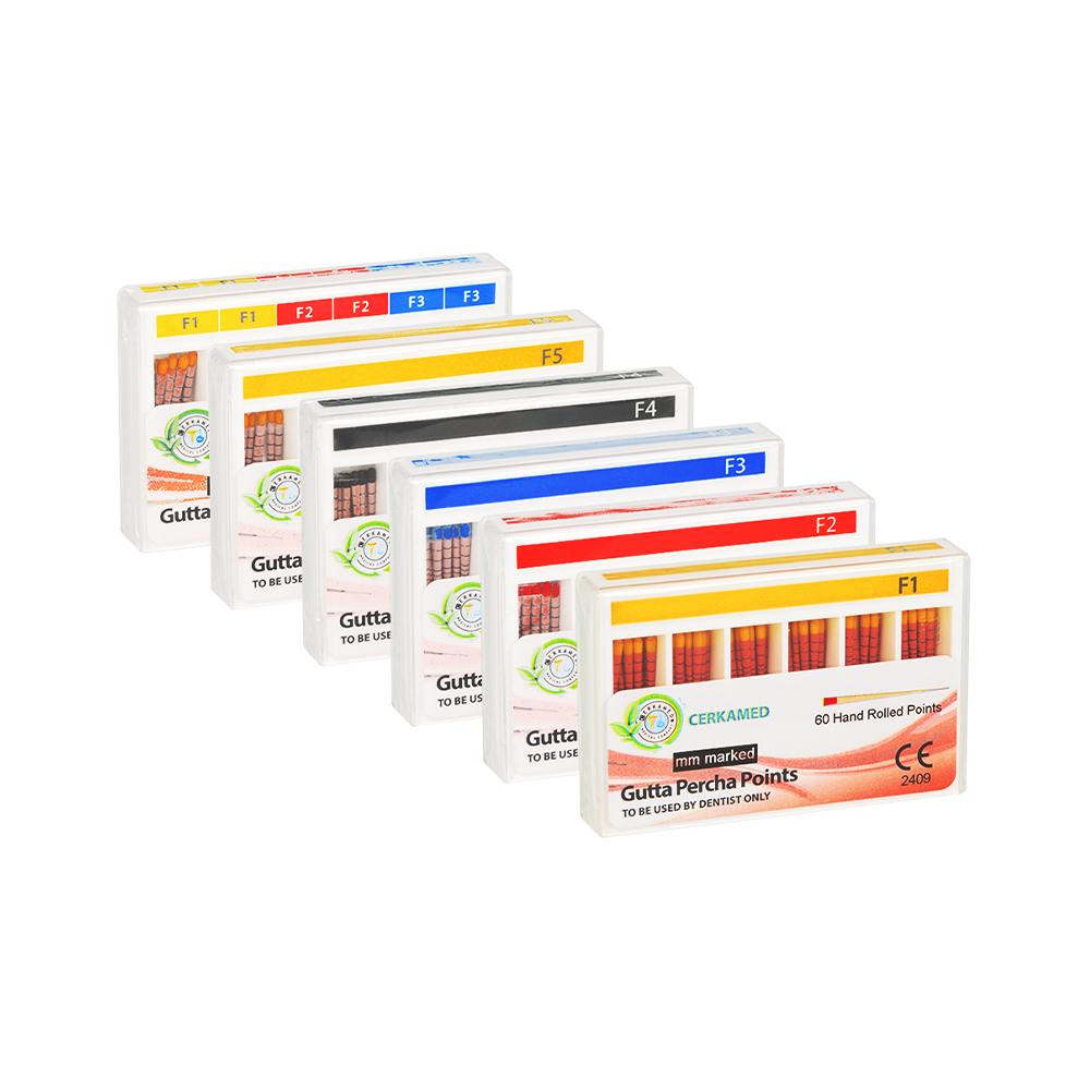 Gutaperčové čepy ProTaper od společnosti Cerkamed jsou určeny k definitivnímu zaplnění kořenového kanálku po jeho preparaci během endodontického ošetření. Díky tvaru odpovídajícímu systému ProTaper zajišťují přesné přizpůsobení stěnám kanálku a umožňují spolehlivou obturaci při použití s endodontickými sealery. Balení: 100 ks.