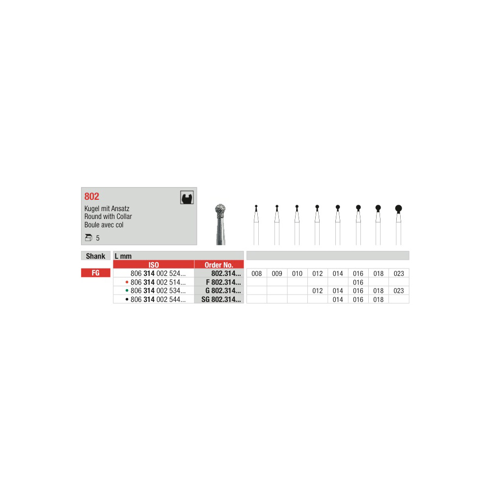 Edenta diamantový brousek 802 kulička s límcem FG
