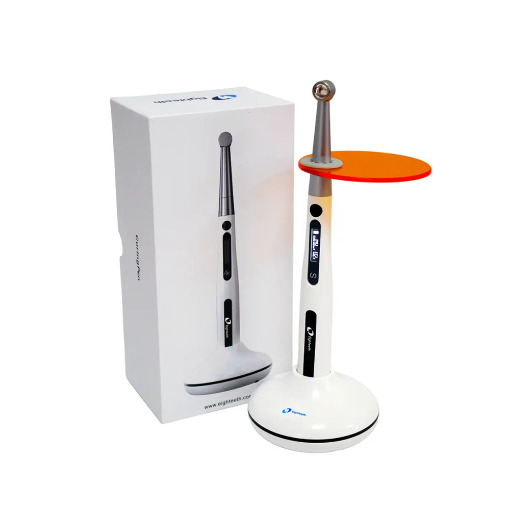 Eighteeth Curing Pen je moderní, ultra-kompaktní polymerační světlo určené pro přesné a cílené vytvrzování kompozitů v těžko dostupných místech. Díky ergonomickému tvaru pera, vysoké intenzitě světla a vyměnitelných nástavců je ideální pro situace, kdy běžné lampy nedosáhnou nebo jsou příliš objemné.