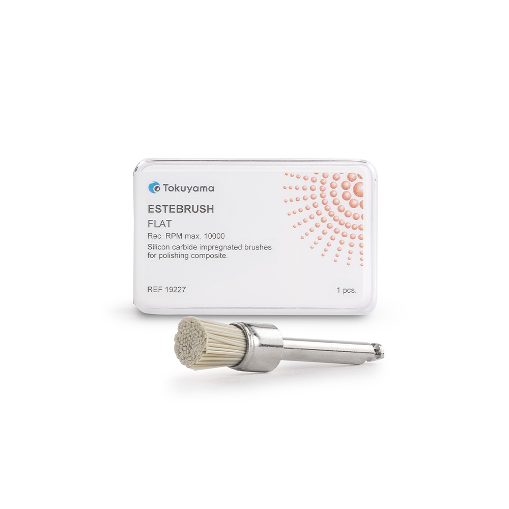 ESTEBRUSH je inovativní lešticí kartáček vyvinutý speciálně pro dosažení perfektního lesku kompozitních výplní, a to bez nutnosti použití lešticí pasty. Díky tepelně odolným polyamidovým vláknům s částicemi karbidu křemíku zajišťuje rychlé, rovnoměrné a účinné leštění přímo v ústech pacienta.