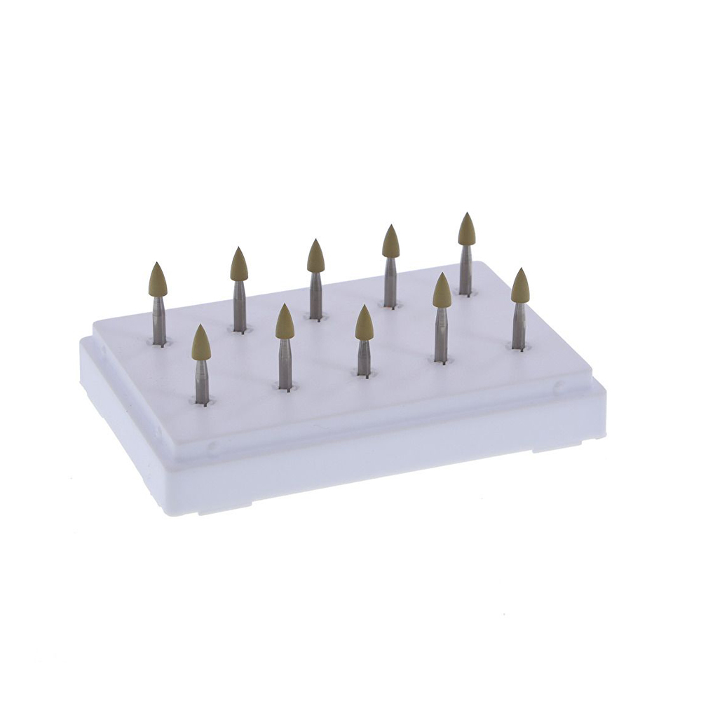 Jednostupňový lešticí systém ze silikonu určený k leštění kompozitních výplní. Stopka pro kolénkový násadec, doporučené otáčky 7 000–10 000 ot./min. Sterilizovatelný v autoklávu do 134 °C.