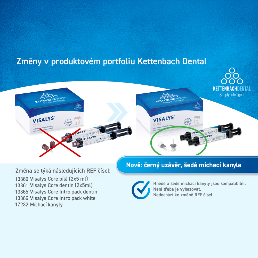 Duálně tuhnoucí kompozitní materiál na dostavby a cementaci kořenových čepů. Je to první "build-up" materiál s unikátní Active-Conect-Technologií, která umožnuje spolehlivou vazbu Visalys Core se všemi dostupnými jedno- i vícesložkovými adhezivy bez nutnosti použít dalšího aktivátoru. K dispozici v automix stříkačkách nebo kartuších v bílém nebo dentinovém odstínu.